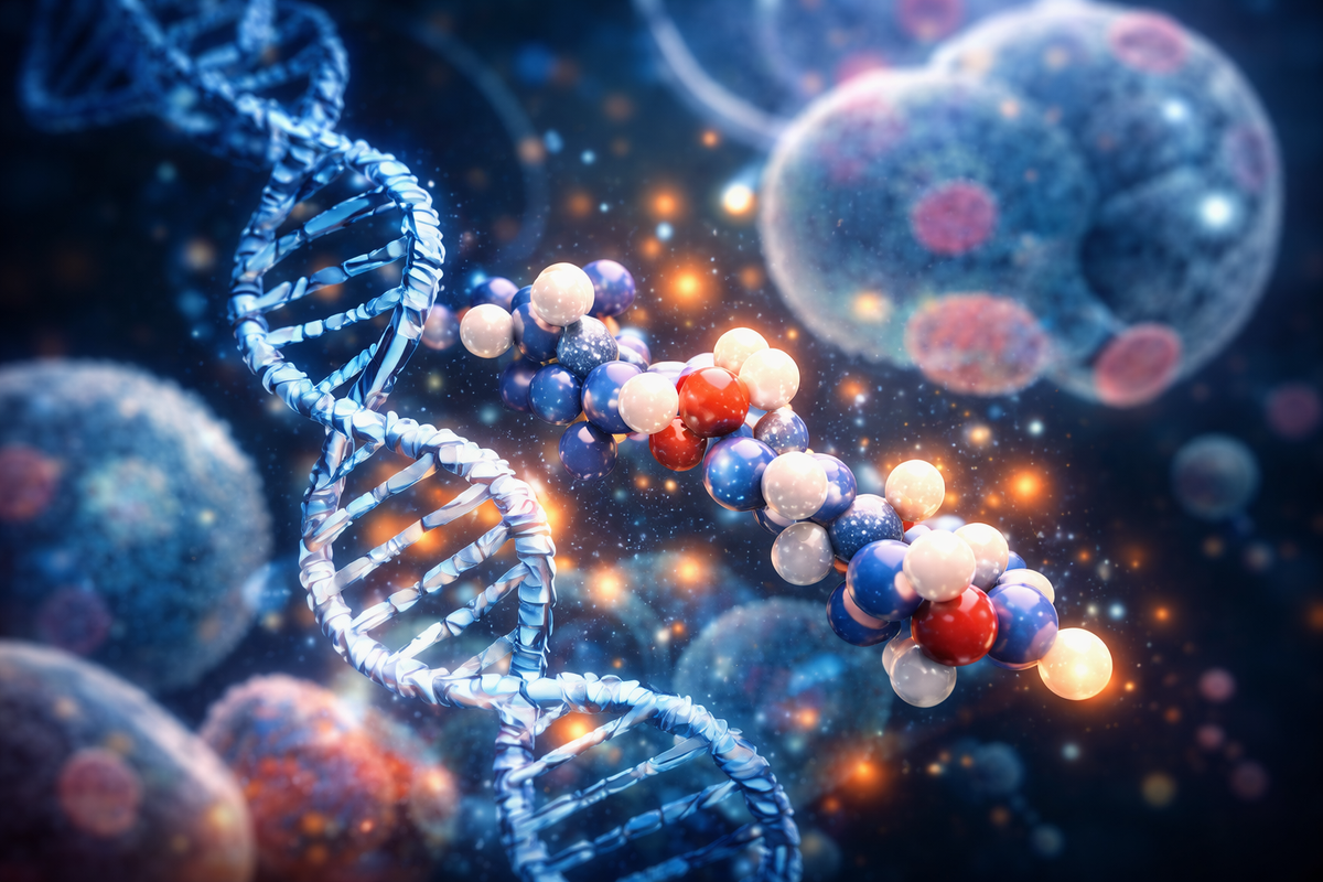 Peptides are short chains of amino acids — the same building blocks that make up proteins — but smaller, faster, and more targeted in how they work inside the body.While proteins often have complex structures and slower absorption, peptides are designed to communicate directly with cells, acting as biological messengers that tell your body what to do and when to do it.